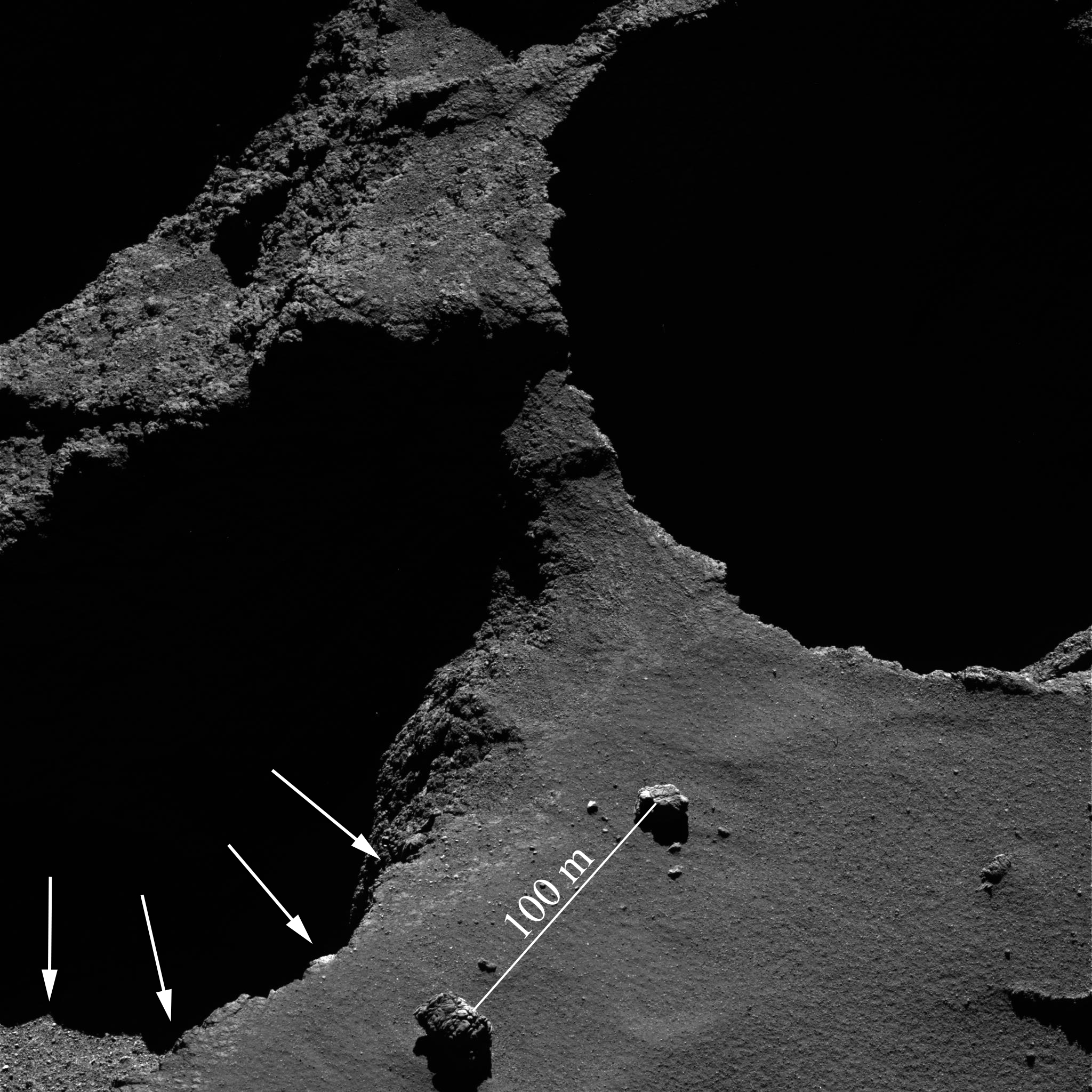 Pictures taken by the Rosetta spacecraft have captured a comet landslide in action for the first time.